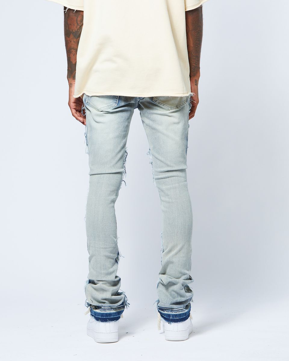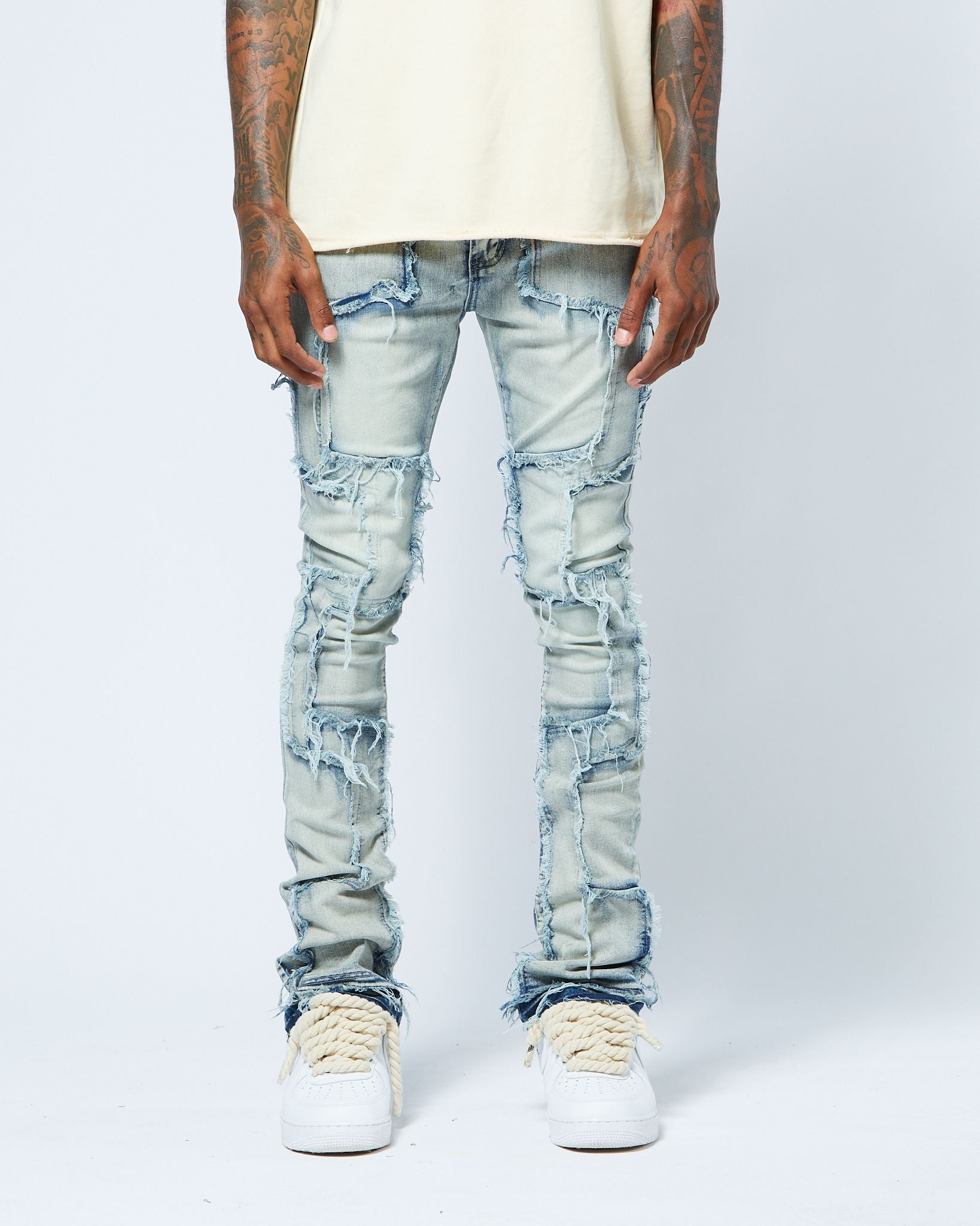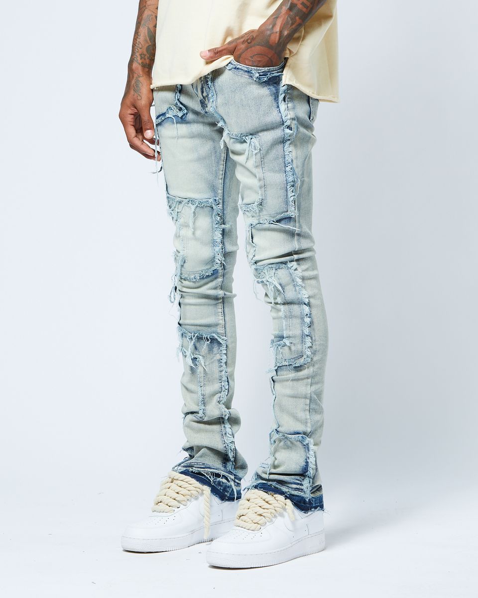 Combining the rugged charm of a vintage wash with the modern silhouette of stacked flares, the unique stacked flare brings a contemporary twist to the classic denim design. It creates an eye-catching and fashionable silhouette, the perfect statement piece for all occasions. Made with high-quality denim, it ensures durability for daily wear and provides comfort for all-day use.